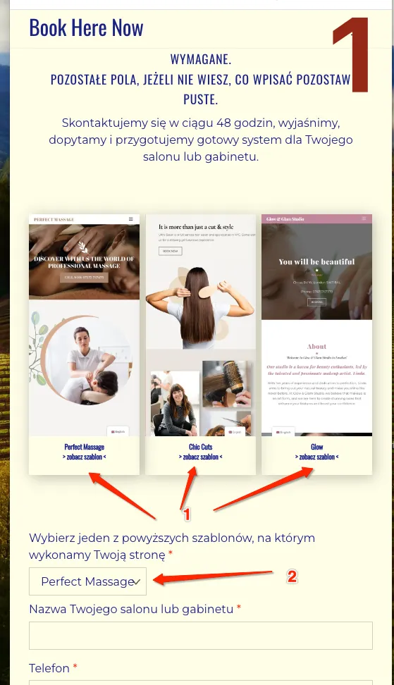 Nazwa salonu i Twoje dane: Wpisz nazwę Twojego salonu i swoje dane kontaktowe. Dzięki temu klienci łatwo się z Tobą skontaktują, a po zarezerwowaniu wizyty dostaną maila z potwierdzeniem i wszystkimi potrzebnymi informacjami.